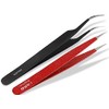 Zupfpinzette-Pinzette Spitz Splitterpinzette Set Rot Schwarz Rostfrei