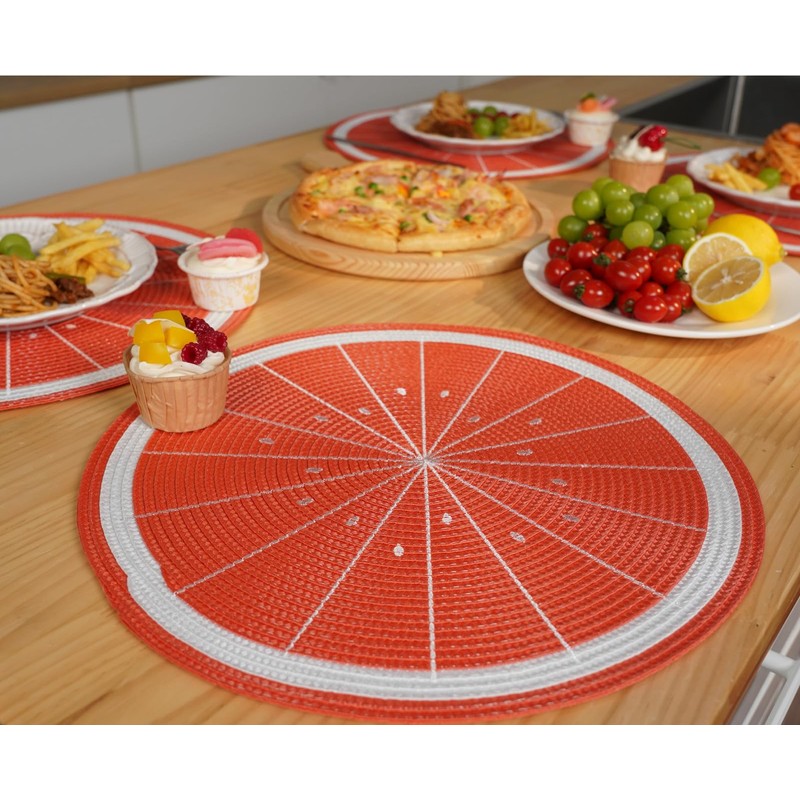 Zupro Round Placemats Set of 6,15inch Fruit Embroidered Table Mats Heat Resistant Non-Slip Washable,for Kitchen Dining Tables Four Seasons Dinner Parties Thanksgiving and Everyday Use.Tangerine orange