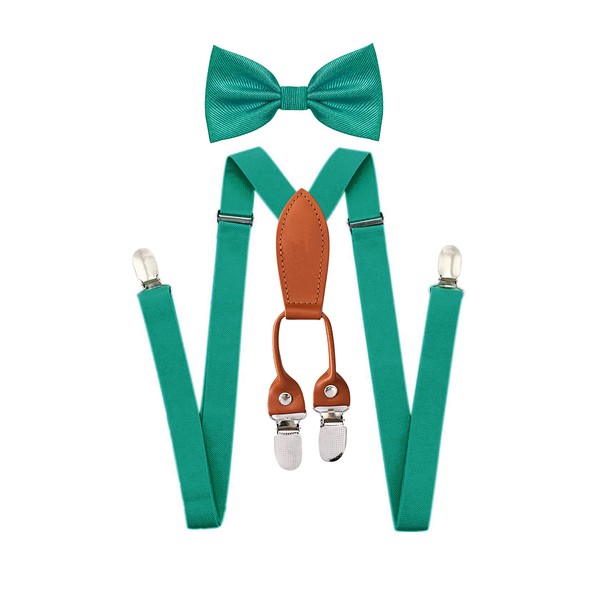 ZURLEFY Juego de tirantes ajustables y pajarita para niños, corbatín y tirantes elásticos con 4 clips de metal fuertes, Agua, Medium