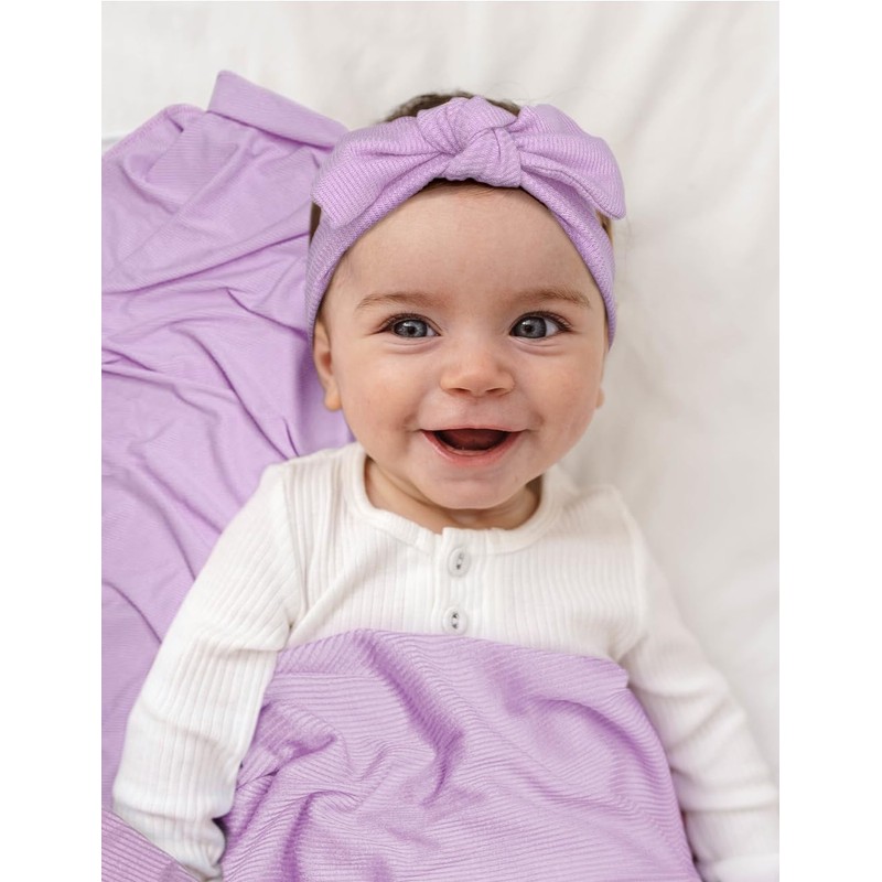 ZURLEFY Purple Stretchy Baby Swaddle Blanket and Hat Set, Newborn Receiving Blankets with Matching Headband for Nursery Swaddle Wrap (62-08)
