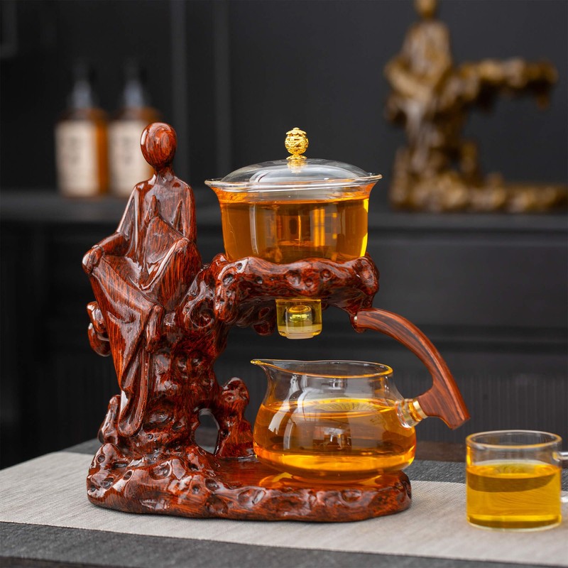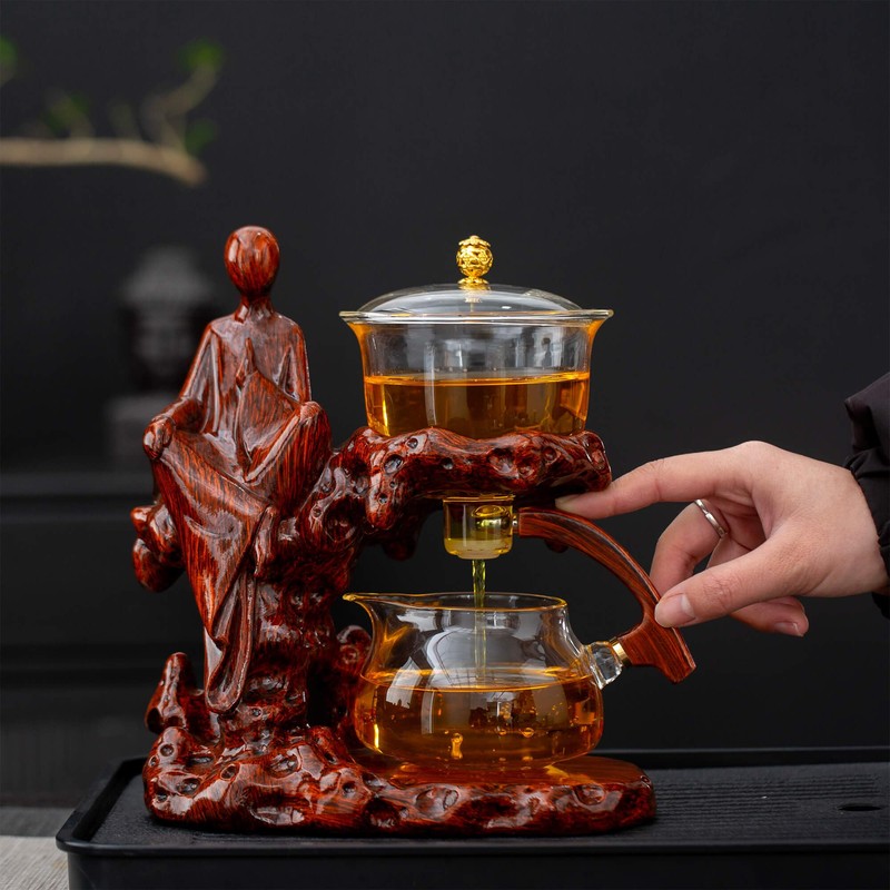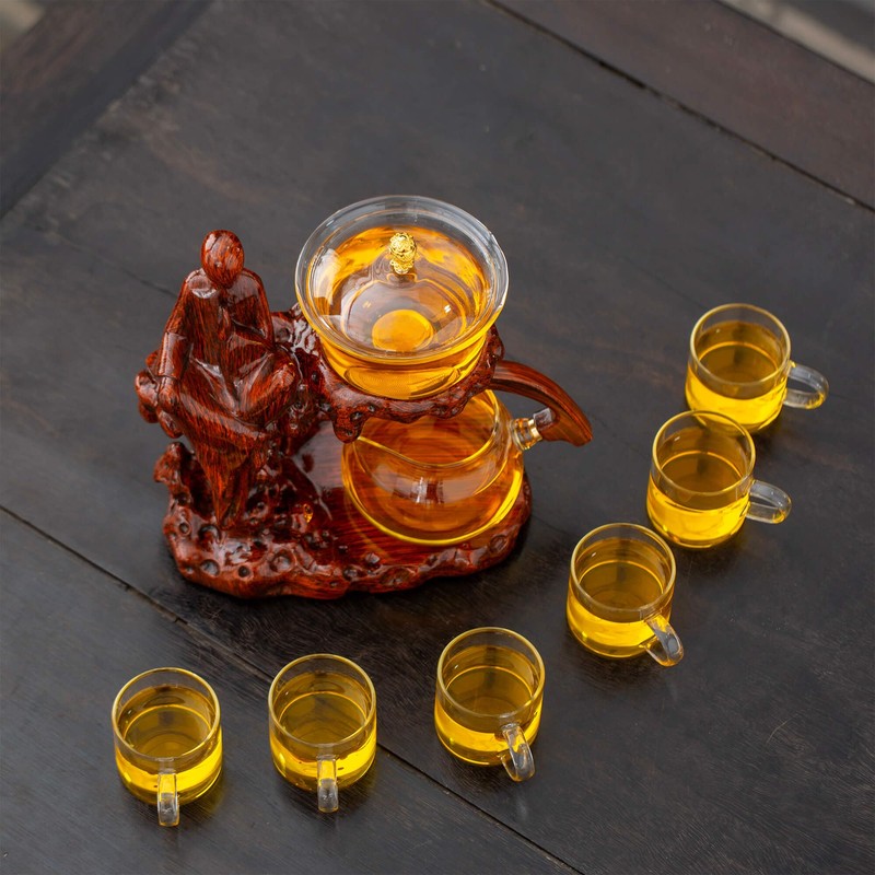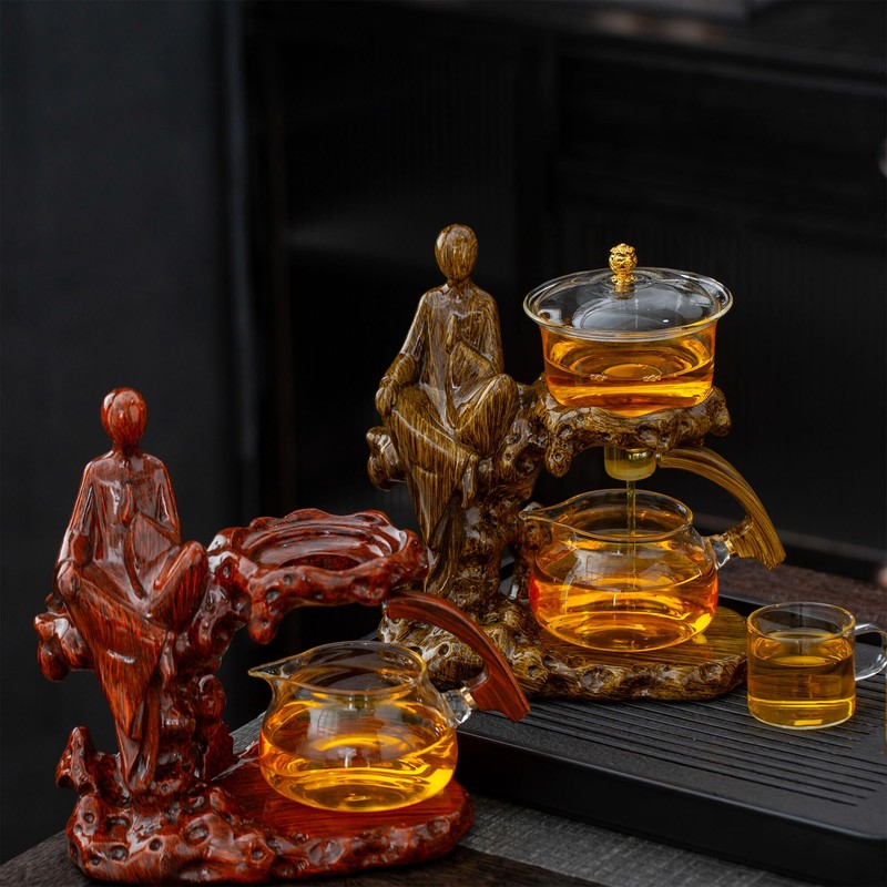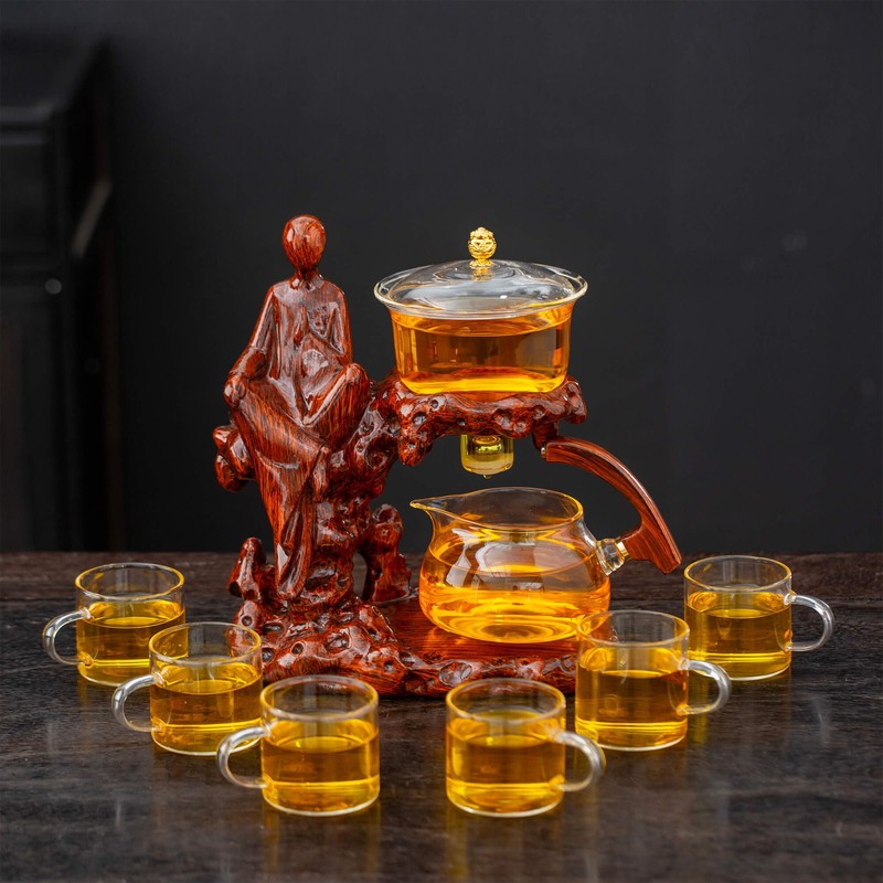 Zurucily Kungfu Tea Sets Semi Automatic Glass Teapot Set (Meditation-red)