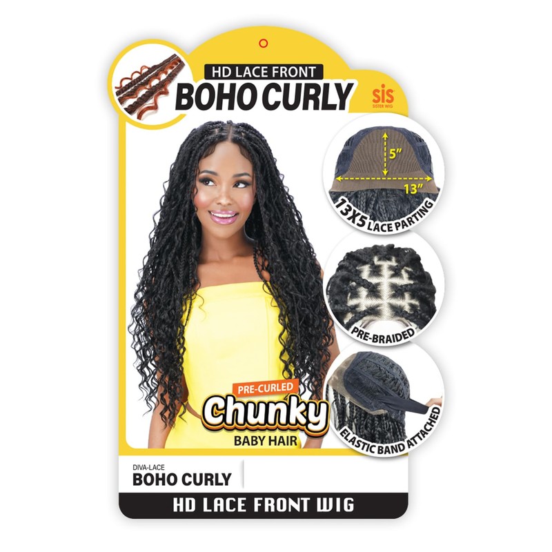 Zury Sis Braided HD Lace Front Wig 13X5 Diva-Lace Boho Curly (SOM GINGER)