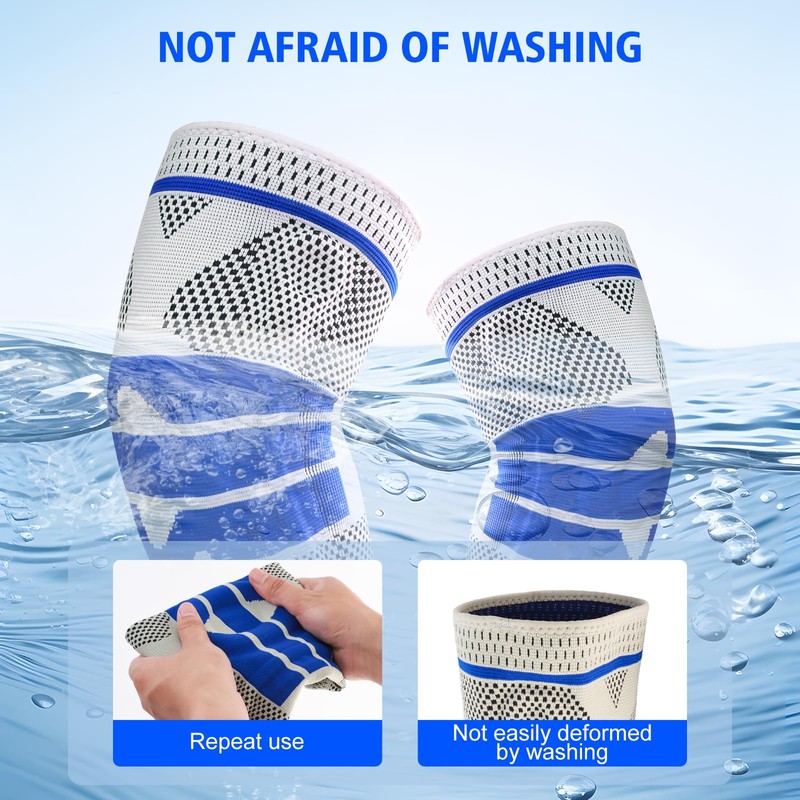 ZUYIST 2 Stück Kniebandage Männer Arthrose M, Wiederverwendbare Kniebandage Damen Meniskus, Silikon Bandage Knie, Atmungsaktiv Knee Support Knieschoner, mit Federstegen für Gelenkschmerzlinderung