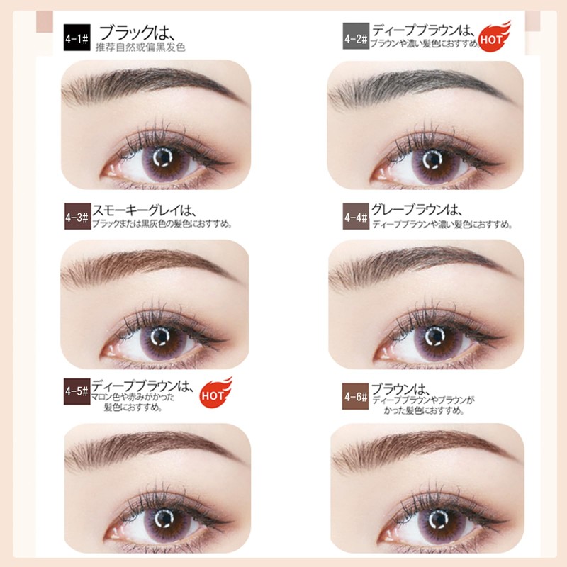 Eyebrows are face frame! It will make your face impressions! Eyebrows are often said to be the frame of your face, and when you make your eyebrows look like they are beautiful. This color is exquisite. Available in a wide variety of 6 colors ranging from basic to trendy colors to match your hair color, eye color, and fashion. It is quite easy to use and convenient to carry around. Whether you are working or going to party, playing or dating, we want to add flower to your beauty. You can use it for yourself and also as a small gift to delight your family, friends and colleagues. How to use: 1.Shaping your eyebrows with the eyebrow brush,adjust your eyelashes and shape your eyebrows 2. Shaping your eyebrows: draw the bottom edge of the eyebrow from the eyebrow or eyebrow with a pencil, keeping the natural shape. 3. Fill: Fill the gap with a short light stroke in the direction of the eyebrows. 4. Natural swirl: Use the eyebrow brush or spiral brush to lightly draw the eyebrows and make the colors uniform, and soften the edges. 5. Check whether the left or right symmetrical: Check both eyebrows are symmetrical and fine-tune if necessary.