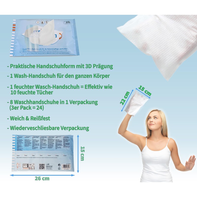 - Ready to use: the washing gloves are ready to use, no body rinsing is necessary - especially when there is no running water available.
