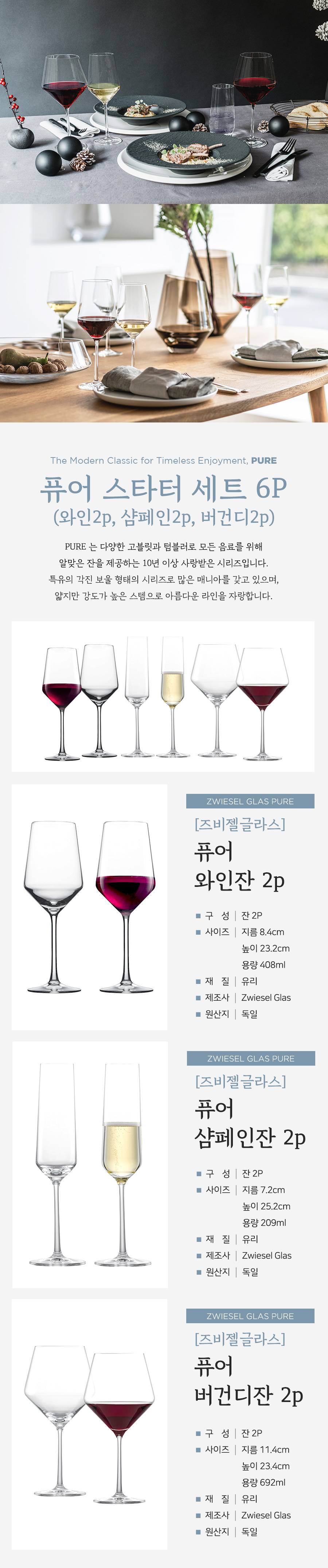 Zwiselglass Pure Starter Set 6p (2p wine, 2p champagne, 2p burgundy) / 즈비젤글라스 퓨어 스타터 세트6p(와인2p,샴페인2p,버건디2p)