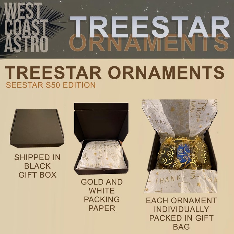 - But wait, there's more! The arm of the Treestar pivots up and down just like the Seestar. Bonus! Each Treestar Pack comes with individually gift bagged Treestar Ornaments packed in a gift box that is lined with special paper.