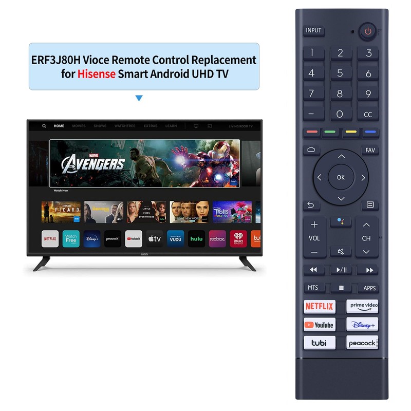 ZWP ERF3J80H Replacement Voice Remote Control fit for 4K UHD Android Smart TVs U6G Series 50U6G 43A4H 40A4H 32A4H 50U68G 55U6G 55A6G 55U68G 60A6G 65U68G 65A6G 65U6G 70A6G 75A6G 75U6G EN2G27 EN33922A