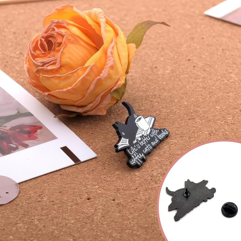 - Cat Pins Style The cat pins fulfill the dream of cat lovers and always attract people's attention the first time. Each cat enamel brooch has different shapes, giving you a different visual experience: each black cat drills into different containers in a fun posture. So interesting!