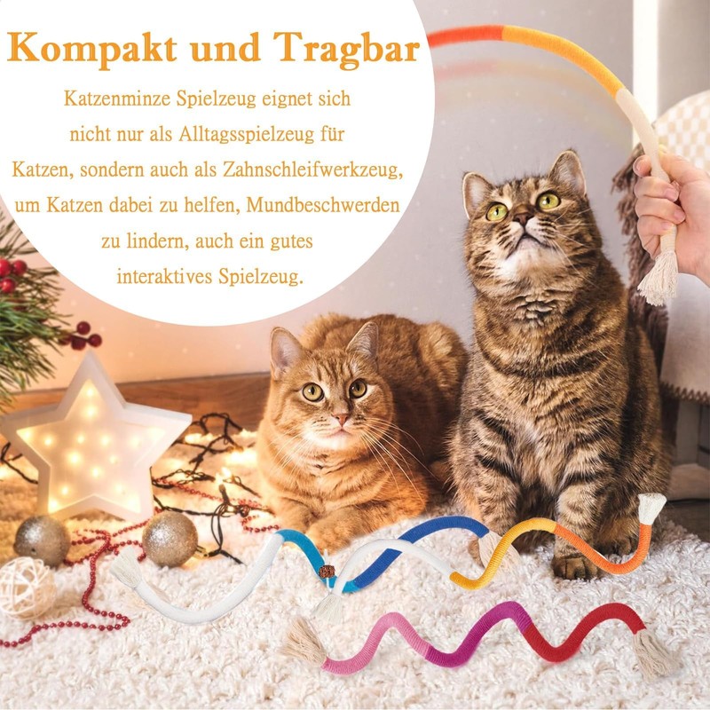 - Interactive cat toy: cat toy, colourful colour matching to make this bite rope more attractive. Bright colours not only match the cat's visual preference, but also stimulate the cat's curiosity and make the cat more exciting when playing.
