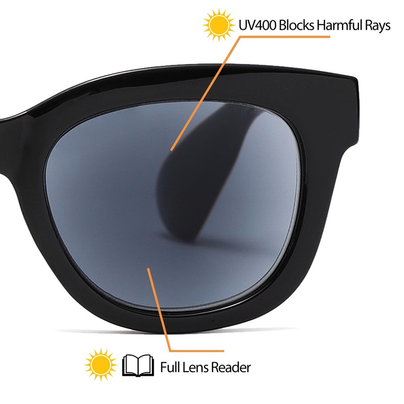 - Enhanced Visual Experience:The wider lens area (50x41mm) provides 20% more reading space than standard glasses. It reduces eye fatigue when reading for long periods of time, and is perfect for outdoor activities such as reading in the sun.