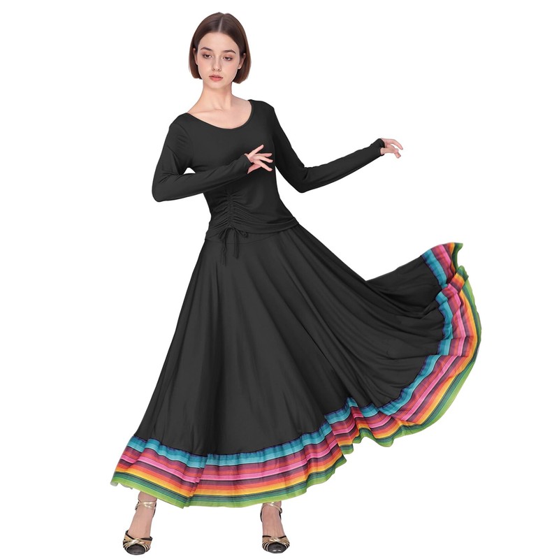- MULTIPLE USE: Perfect for waltz, flamenco, modern dance, ballroom dance performance, folkloric mexican dance skirt, competition, stage performance costume, national standard dance. Also ideal to wear on prom party, daily life, street wear, dating, gowns, cocktail, party, weddings, vacation, holidays and so on.