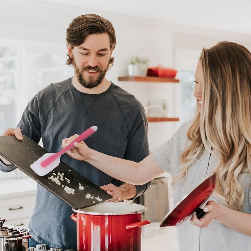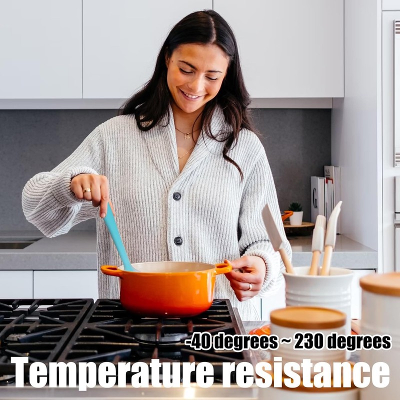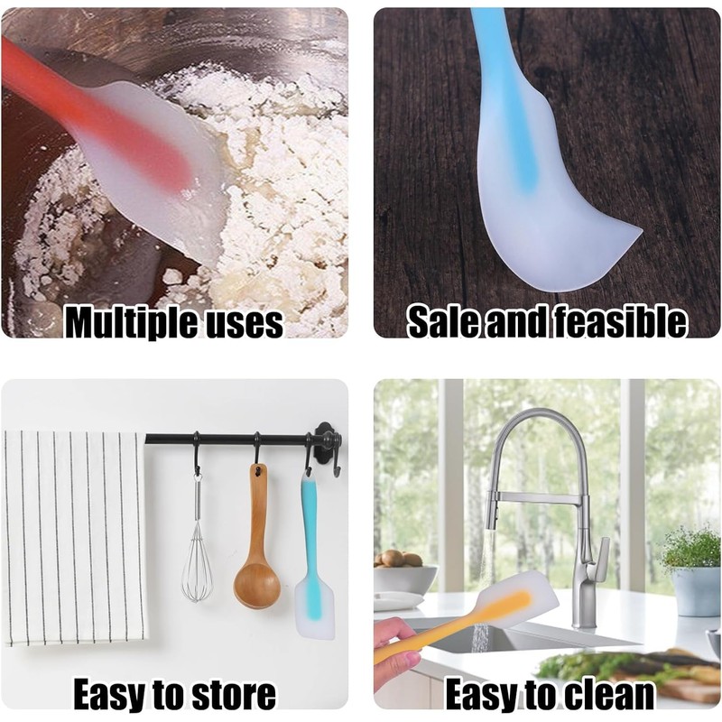 - 【Perfecta para Superficies Anti-Adherentes】Gracias a su material de silicona suave y flexible, nuestra espatulas reposteria no rayará ni dañará las superficies de tus sartenes, cazuelas o utensilios de cocina antiadherentes. Esto te brinda la tranquilidad de utilizarla en tus mejores utensilios sin preocuparte por dañarlos, haciendo de esta espátula una herramienta esencial en tu cocina.