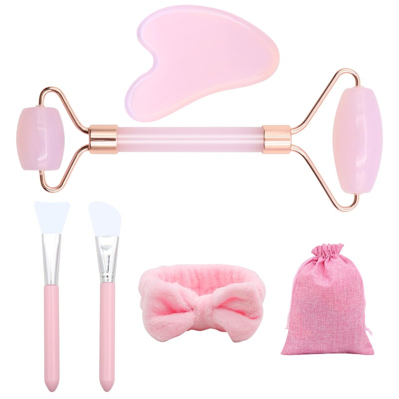 - 【Perfektes Geschenk】Das Jadestein-Massageset enthält 1 Jade-Roller*1, Guasha-Stein*1, Bownot-Haarband*1, Silikonmaskenpinsel*2, Beutel mit Kordelzug*1, ein tolles Geschenk für Weihnachten, Valentinstag, Jubiläen und Geburtstage.