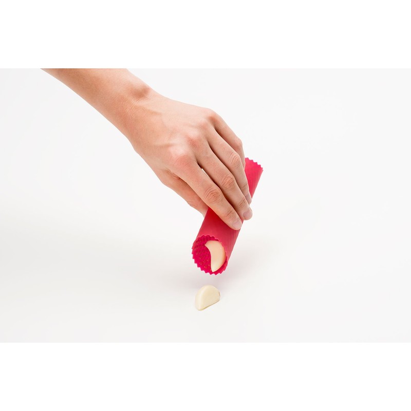 • Silicone ridges on the inside help shed the garlic skin effortlessly