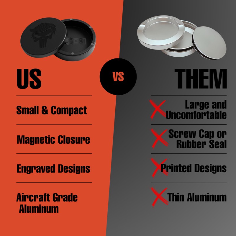 - MAGNETIC CLOSURE: Ever had your stash explode all over the place? Yeah, us neither. The magnetic closure ensures your precious cargo stays secure, even if you pop a nosedive during a blindfolded beer pong battle or take a Biden-level tumble down some stairs. It closes with a clink that's more satisfying than the sound of an ice-cold brewski.