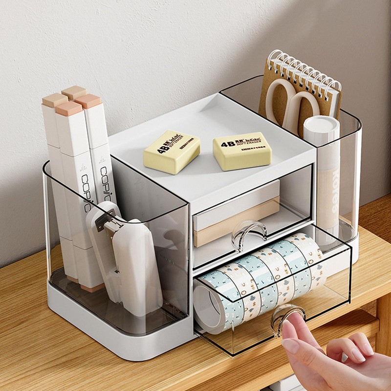Zyners Desk Organizer with Pen Holder and 2 Drawers, Office Organizer with Pen Holder, Desktop Organizer for Desk, Office, School, Home(White)