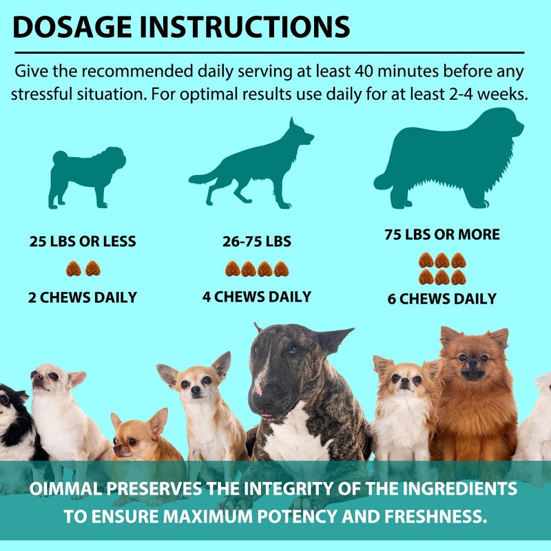 - Soft Chew Supplement:Helping your pet stay calm and relaxed with quiet moments tasty soft chews. For some dogs with a sensitive stomach or a picky mouth for diet change, you can break one and put it with little amount in her food and add amount in next meal. and he/she will better adopt them