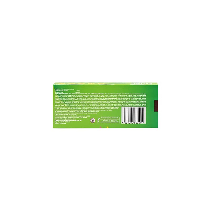 Descripción: Detalles del Producto: | Marca: Zyrtec | Peso del producto: 200 Gramos | Dimensiones del artículo Largo x ancho x alto: 12 x 8 x 20 centímetros | Ingredientes activos: Cetirizina | Forma del producto: Tableta | Cantidad de unidades: 1 unidad | Recuento de contenido neto: 10 Caja