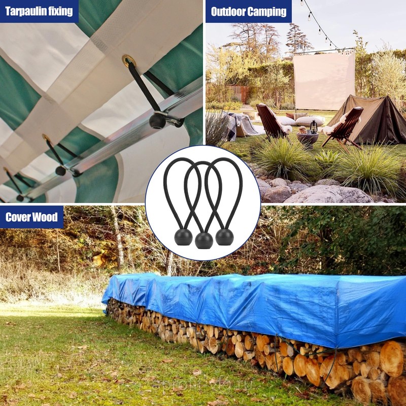 - 【Wide Application】: Our heavy duty elastic bungee balls are ideal for attaching tarpaulins, tents, flags, trampolines, blankets, poles, fishing rods, shade cloth. Also ideal for indoor use to tidy up messy cords, cables, hoses, curtains, or attach lights or other decorations.