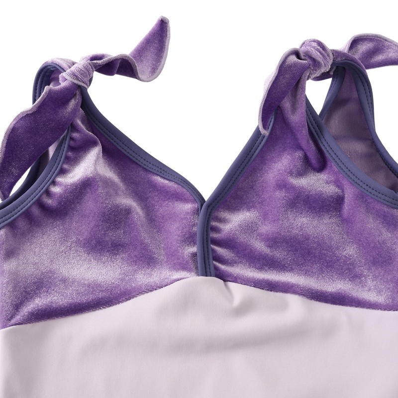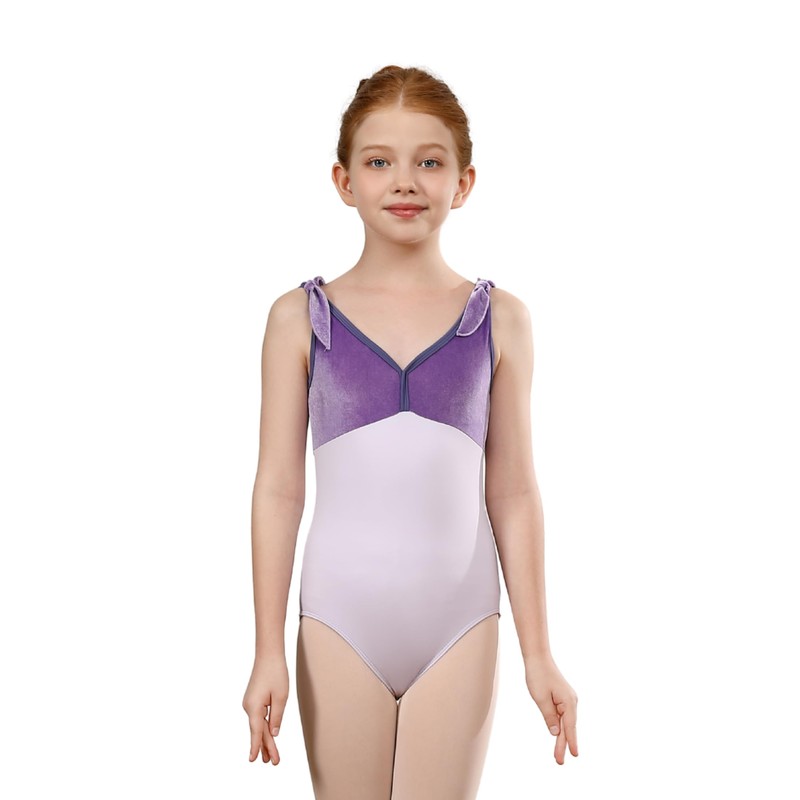 ZYXWVU Girls Velvet Sleeveless Ballet Dance Leotards with Bow Shoulder - Gymnastics Leotard for Kids, 7011-Purple, 10-12 years