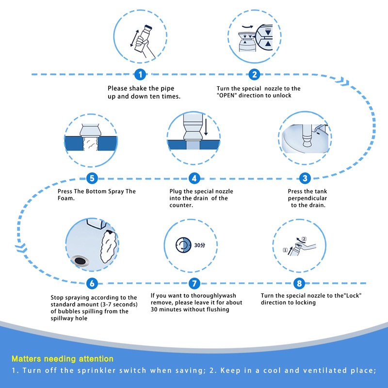 - Safety Materials - Sink and Drain Cleaner is made from Gentle formula,no harm to the pipeline. It won't damage your drains, pipes. Foaming drain cleaner removes thick hair clogs fast. effectively in bathroom sinks, kitchen sinks, showers and bathtubs.