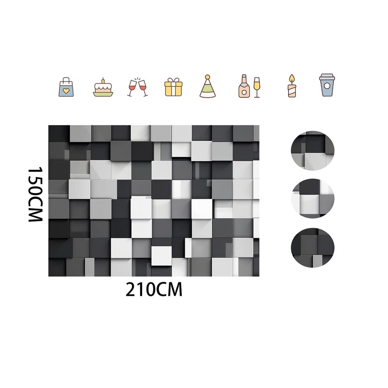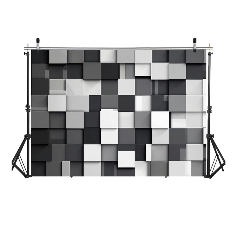 ZZBYSM 7X5FT 3D Geometric Photography Backdrop Black and White Cube Pattern Square Party Photography Background Event Decoration Backdrop Cartoon Theme Birthday Party BY321