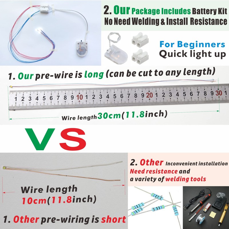 - 【Instalación práctica】El paquete incluye LED SMD precableado + soporte de batería + conector, no hay necesidad de instalar resistencias que pueden iluminar rápidamente el LED, ser muy adecuado para modeladores principiantes.