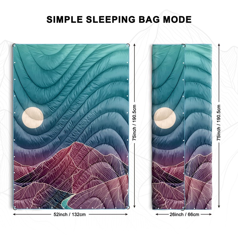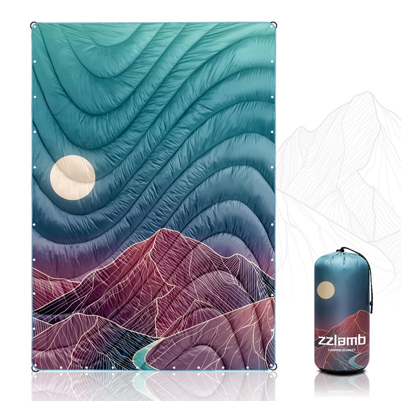 zzlamb Puffy Camping Blanket, Outdoor Lightweight Travel Blanket Portable Down Alternative, Windproof Warm Cloak with Snaps, Cozy Quilt Picnic RV Plane Car Hammock Beach Climbing, Ethereal Moonlit