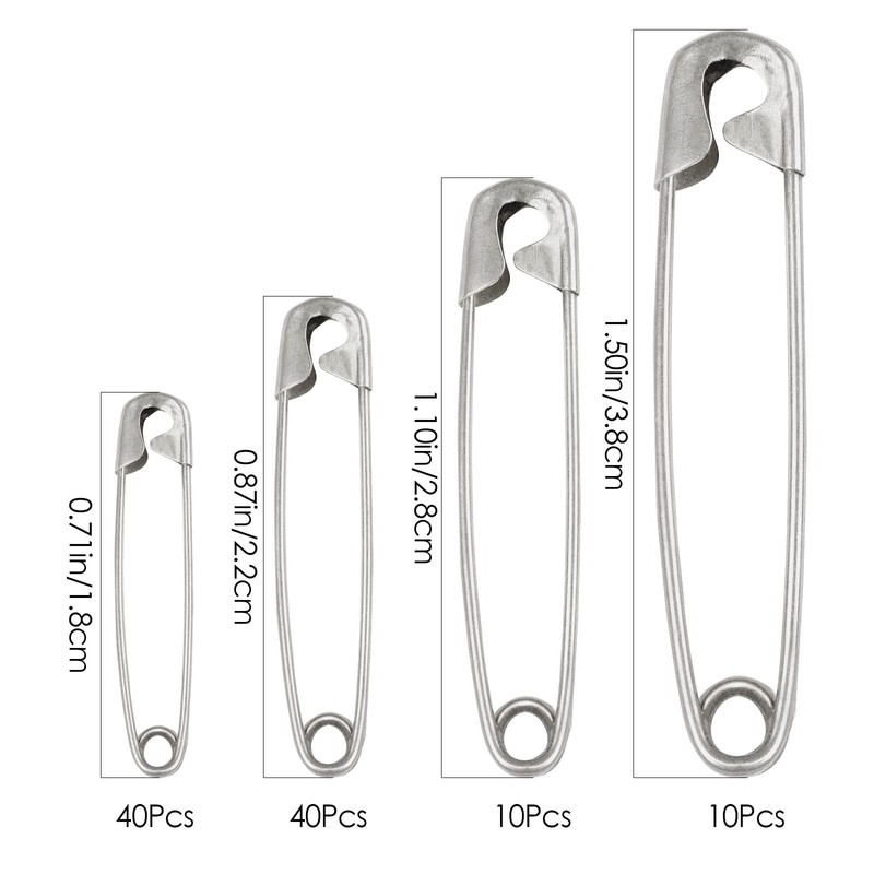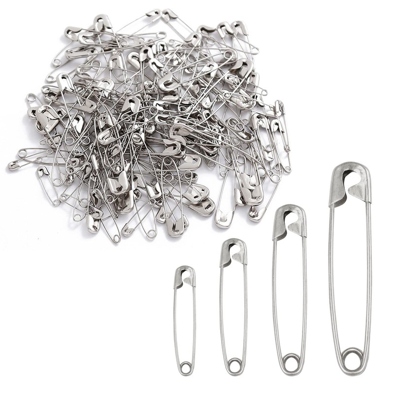 ZZLBZN Safety Pins, 100Pcs Sliver Safety Pins for Clothes, Strong Nickel Plated Steel Rust Resistant Sewing Accessories for Clothes Arts Crafts DIY Pinning Hemming Dressmaking 4 Sizes-18 22 28 38mm