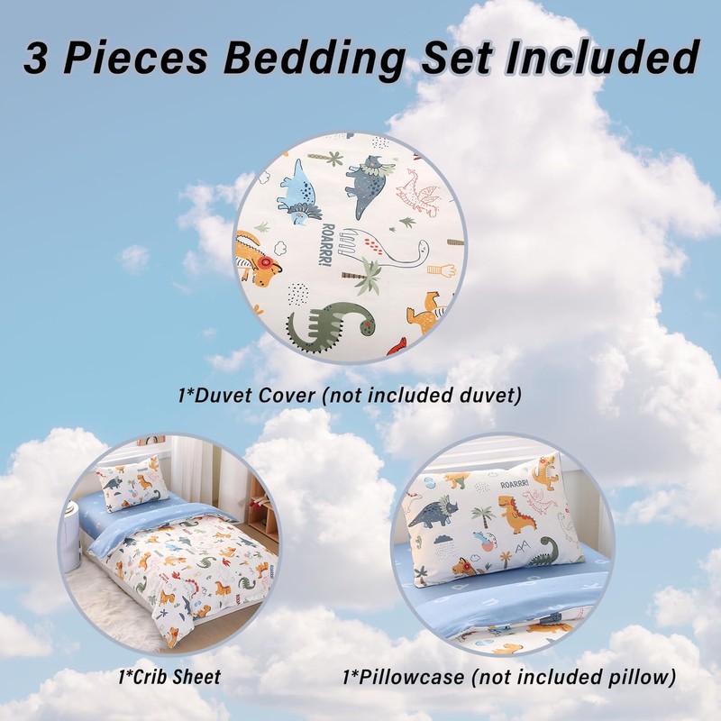 ZZRSSSLC 100% Cotton Dinosaur Crib Bedding Set Cute Animal Printed, 3 Pieces Soft Breathable Crib Bedding Set for Boys, Nursery Bedding Set - Fitted Sheet, Duvet Cover, Pillowcase