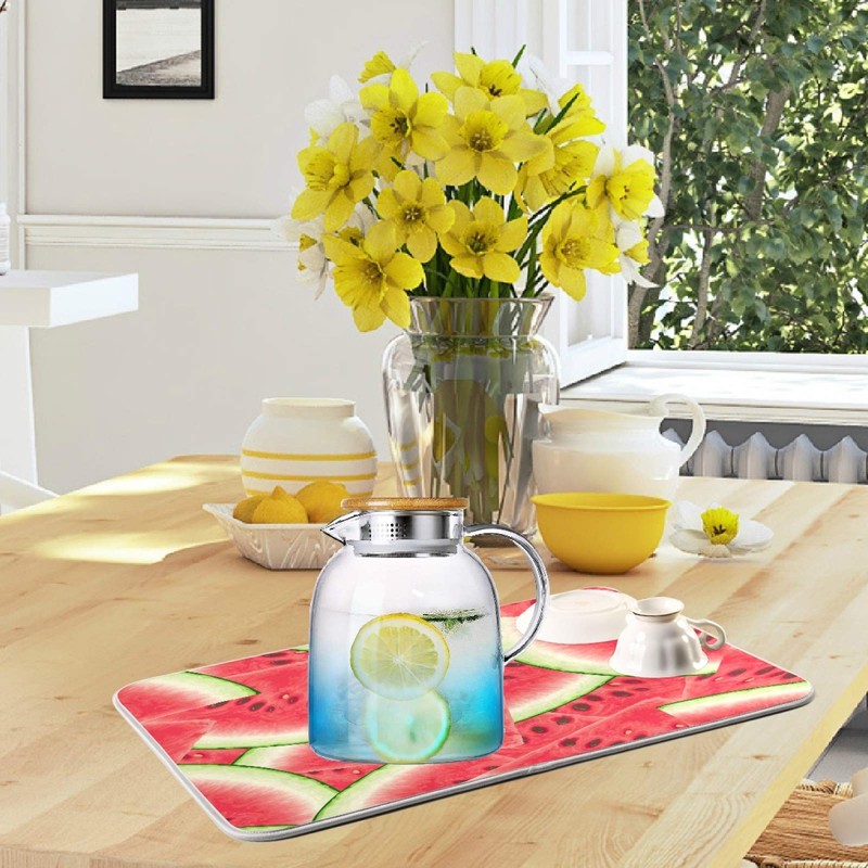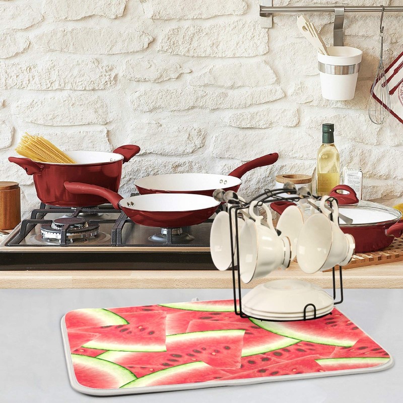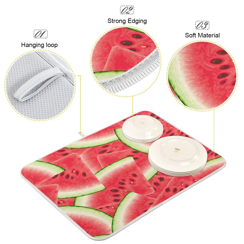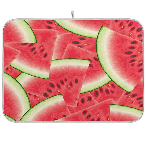 ZzWwR Summer Sweet Watermelon Absorbent Dish Drying Mat Microfiber Kitchen Countertop Table Protector Multi-Purpose Counter Rack Sink Drainer Pad (16" x 18")